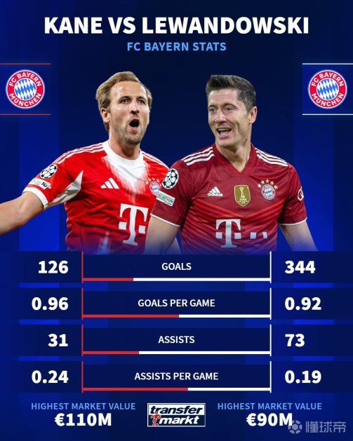 莱万与凯恩拜仁生涯数据对比?凯恩有机会本赛季打破...